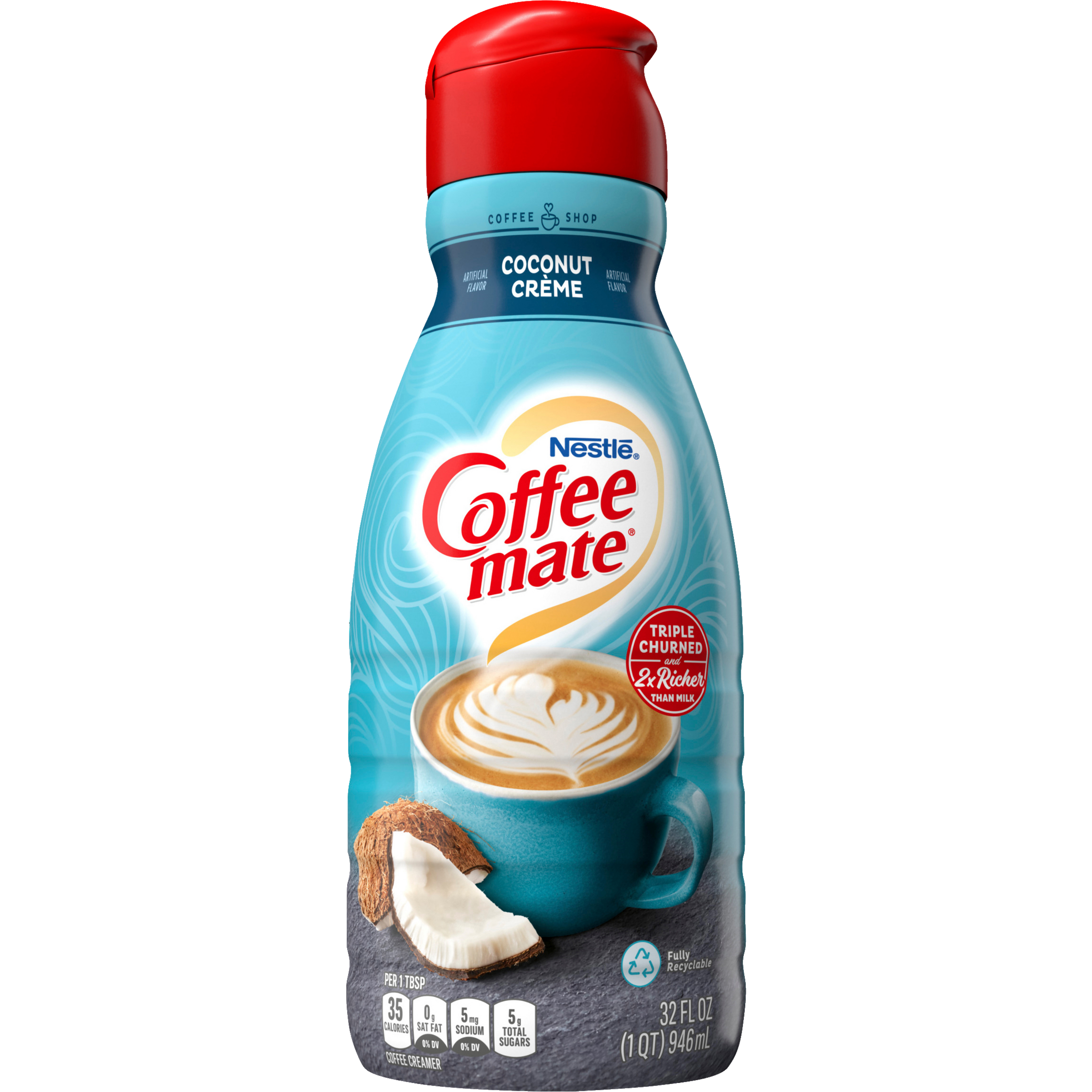 The 32-ounce capacity bottle also helps. Coffee mate French Vanilla. Kick back with a Coconut Creme Flavored creamer that is triple churned and 2x richer than milk.